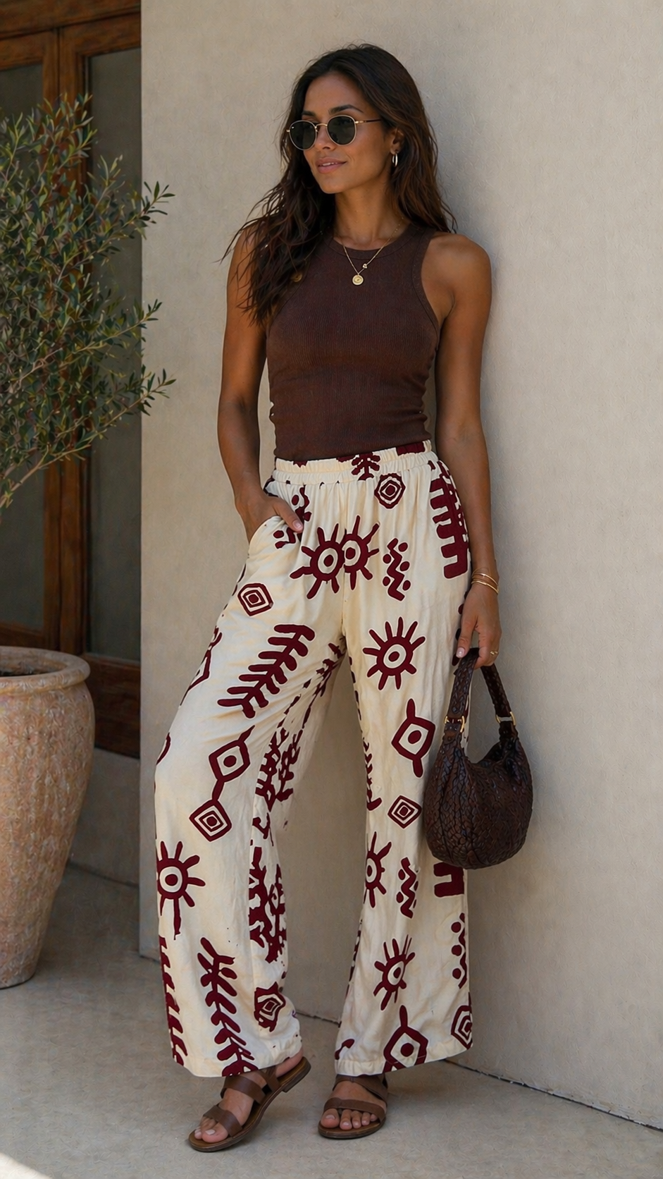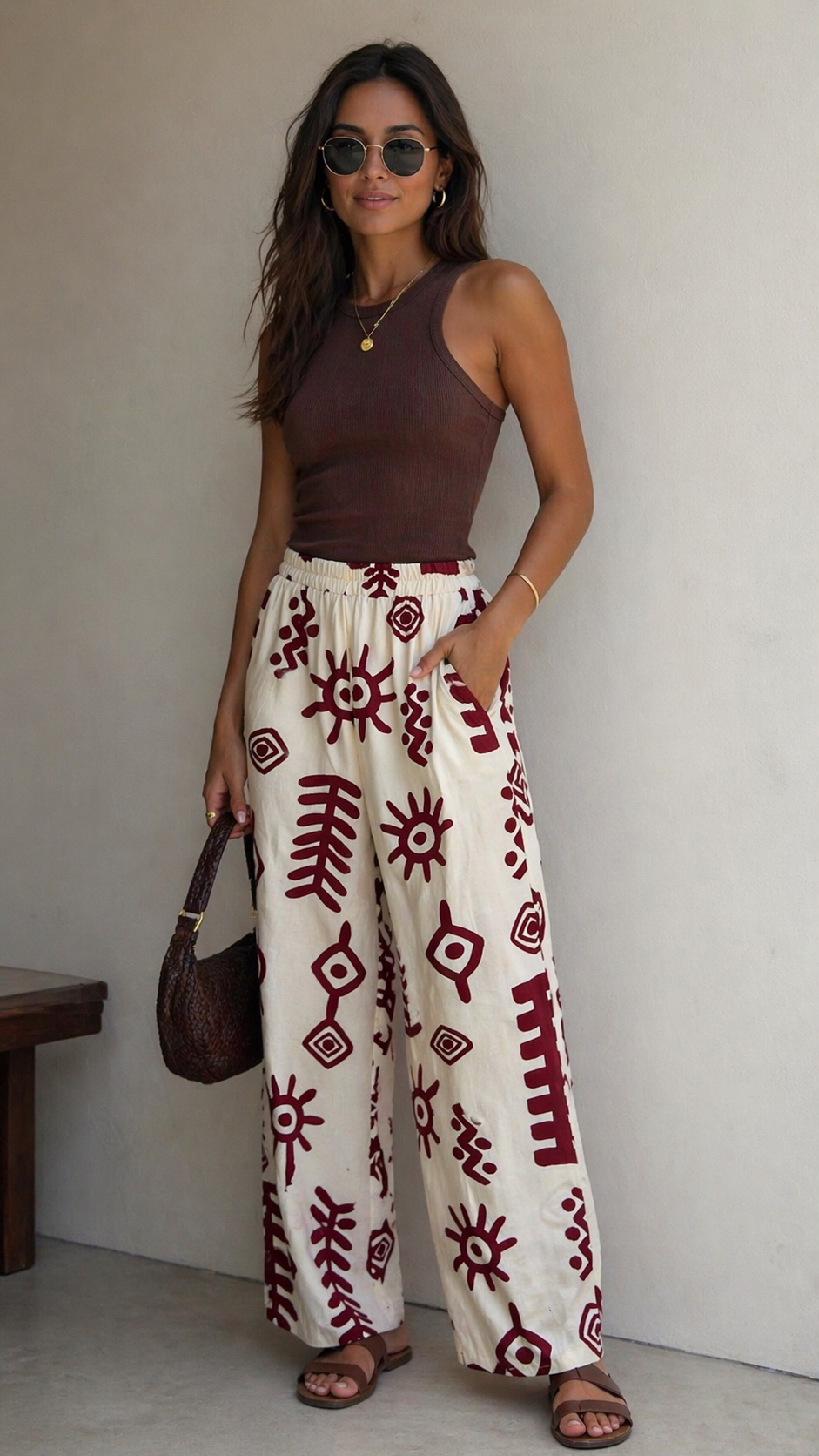 Equilíbrio Boho: Use com uma regata básica branca e muitos acessórios em madeira ou dourado para um passeio à tarde.